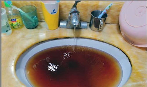 隨后,記者來到鮑先生家中,在衛(wèi)生間的洗臉池中,有一盆黑褐色像醬油一樣的水。“這還是中午接的水,放在這里沉淀了這么長時間,顏色都沒變。”鮑先生說,由于前天上夜班,他休息到昨天中午才起床。鮑先生本準(zhǔn)備洗漱做飯,一開水龍頭卻嚇了一跳,流出來的水又黃又渾濁,他只能用家里剩下的一點涼開水刷牙。“從發(fā)現(xiàn)自來水變色到現(xiàn)在幾個小時了,水還是臟的,也不知道是啥原因。”鮑先生當(dāng)著記者的面打開水龍頭,自來水水流很小,而且依然是黑褐色的。