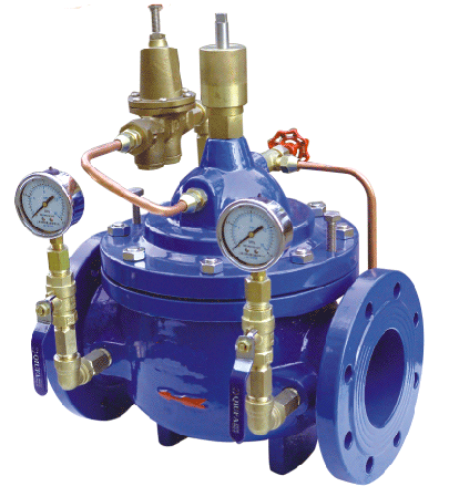 400X流量控制閥由主閥、流量調(diào)節(jié)閥、針閥、導(dǎo)閥、球閥、微形過(guò)濾器和壓力表組成水力控制接管系統(tǒng)。利用水力自動(dòng)操作,控制和調(diào)節(jié)主閥開(kāi)度,使通過(guò)主閥的流量保持不變。